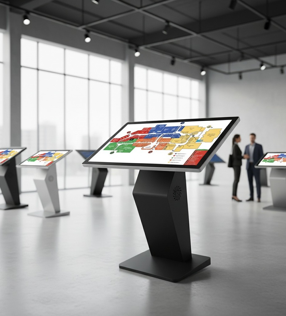The digital bridge for wayfinding and visitor info. smartphone-like response on a massive industrial scale.